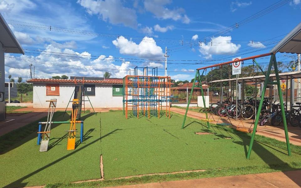 Apartamento térreo contendo sala de estar, cozinha americana, 2 quartos sendo 1 com armário embutido, banheiro social, área de serviço e vaga de garagem descoberta para 1 carro. Condomínio contendo salão de festas, playground e guarita, com água e energia individuais. IPTU e Condomínio inclusos no valor do aluguel.
