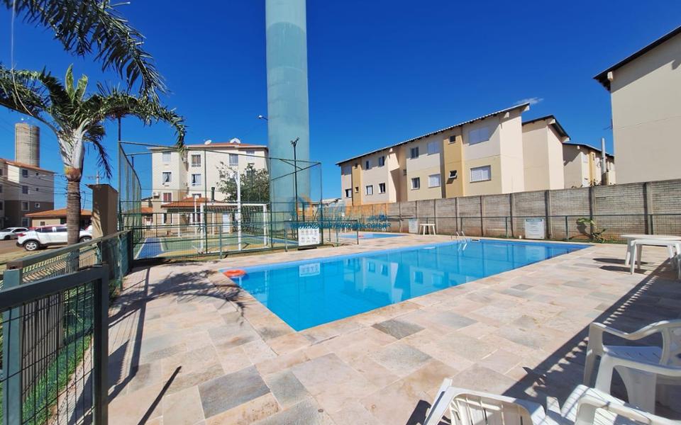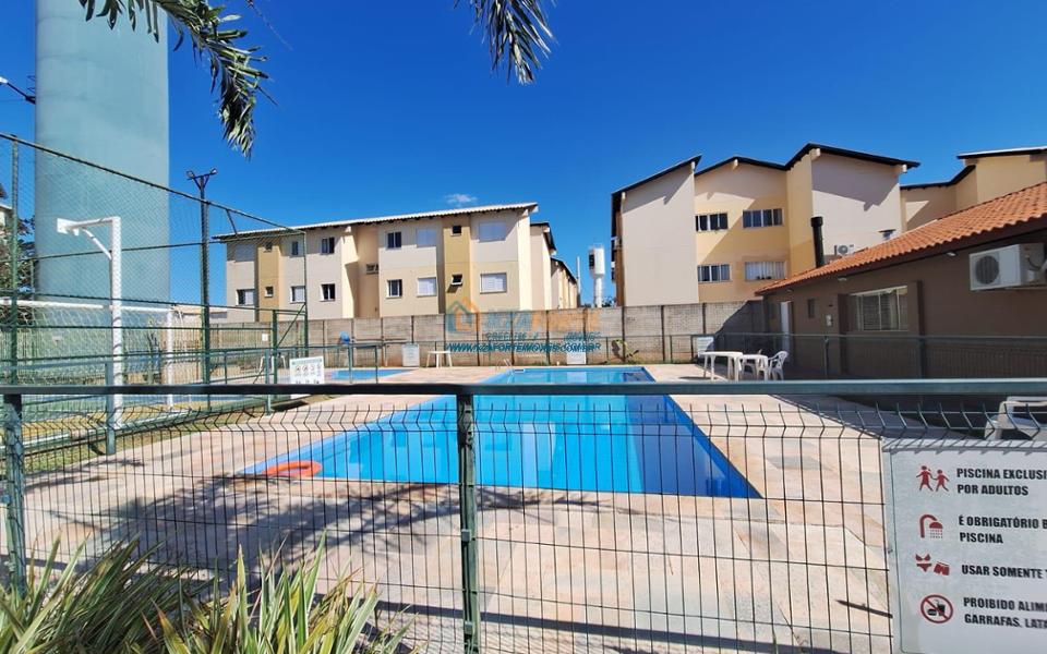 Apê mobiliado no 3° andar no Condomínio Residencial Parque dos Jatobás I, rico em armários, com pisos em porcelanato, contendo sala de estar, 1 quarto com a/e, 1 quarto com painel com armário embaixo, criados, cama e ar condicionado, banheiro social com a/e, cozinha planejada, área de serviço com armário e 1 vaga de garagem descoberta. Condomínío: R$ 250,00, possui guarita, portaria 24 horas, piscina, quadra de esportes e salão de festas. Água, gás e energia individuais. Excelente localização.