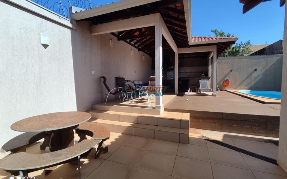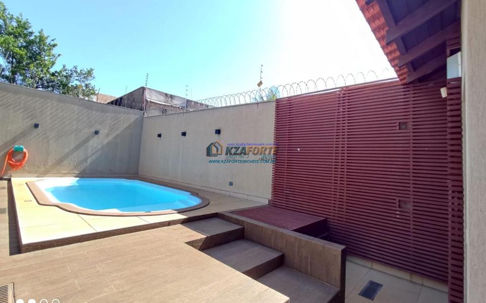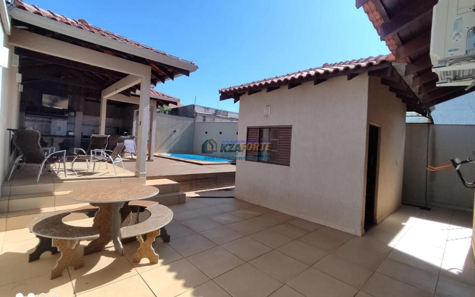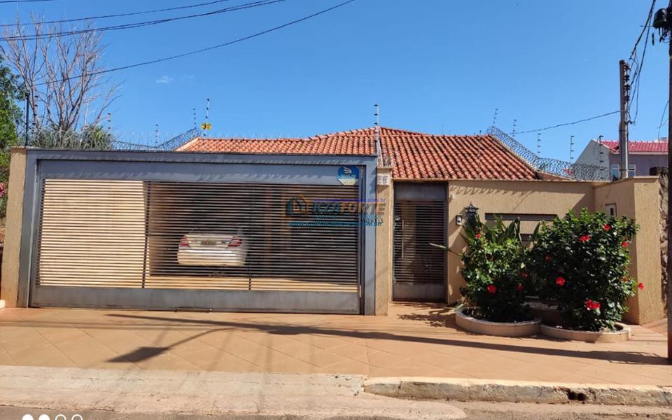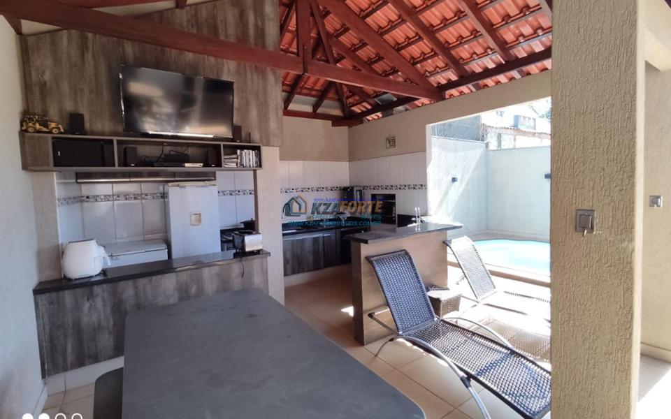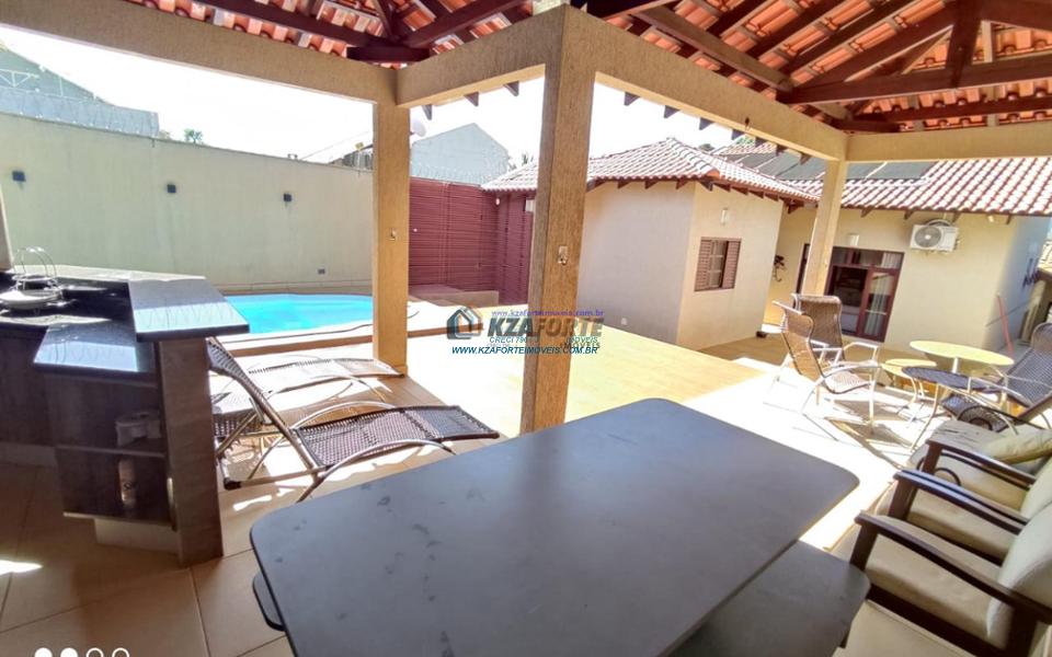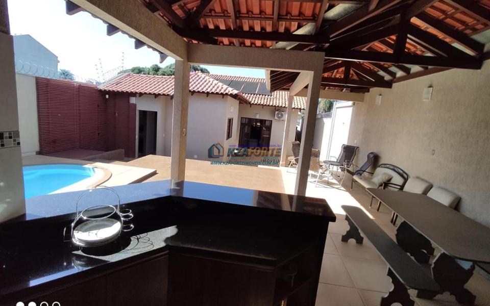 Excelente estado de conservação, área gourmet com bancadas em granito, armários embutidos, com varanda, piscina, telha romana, toda de laje, garagem coberta para dois carros e mais dois abrigos, varanda e garagem da frente com forro de madeira e viga aparente. Terreno medindo 10 x 40 metros. Ótima localização em região central. Aceita financiamento.