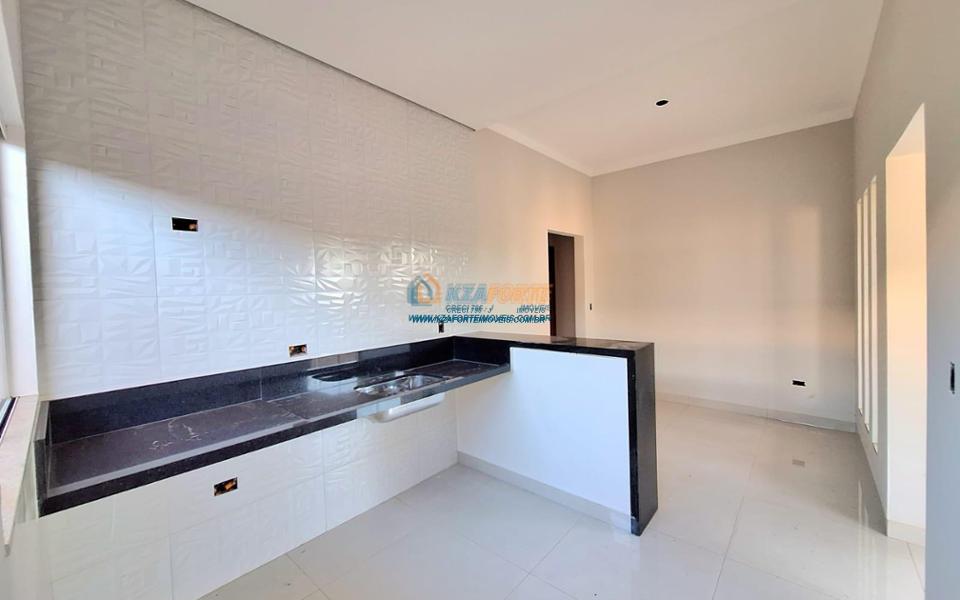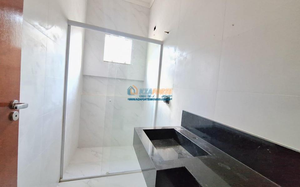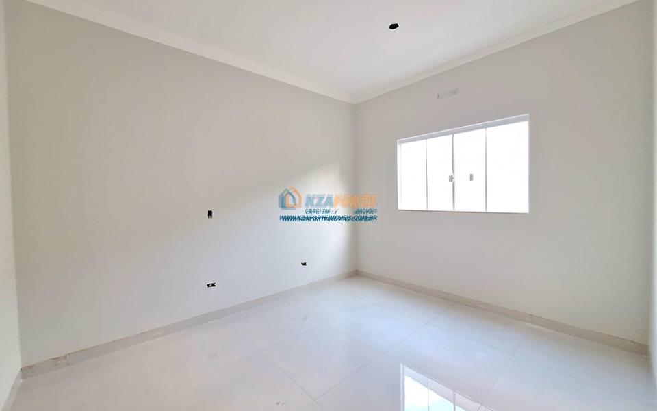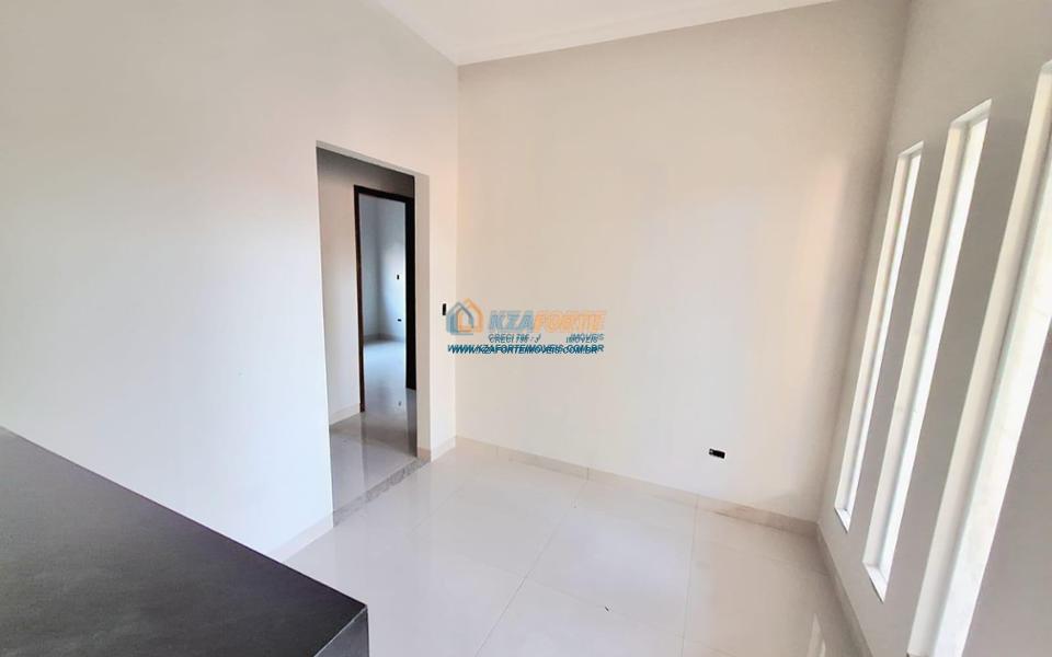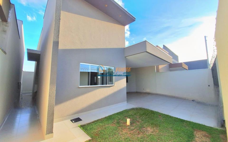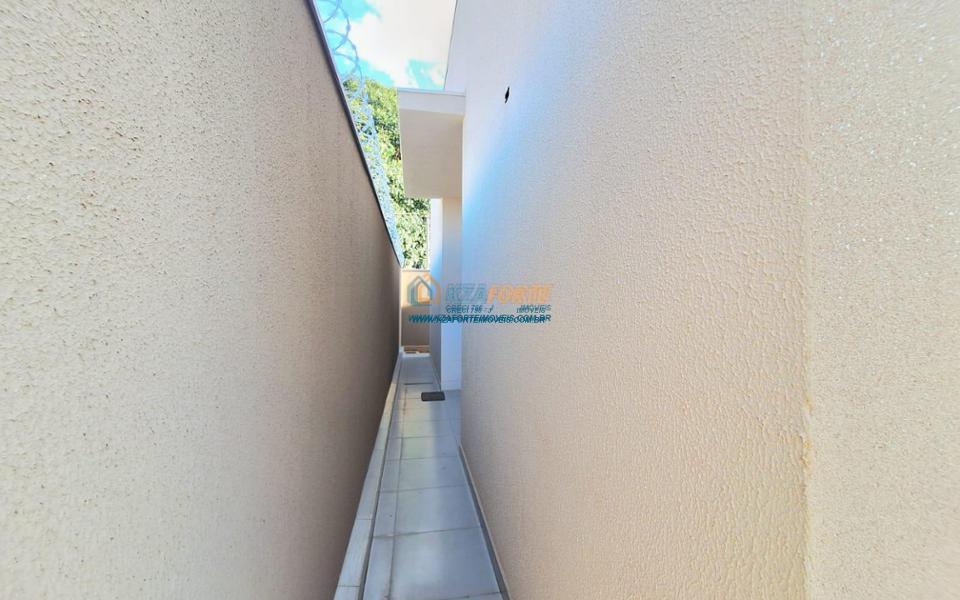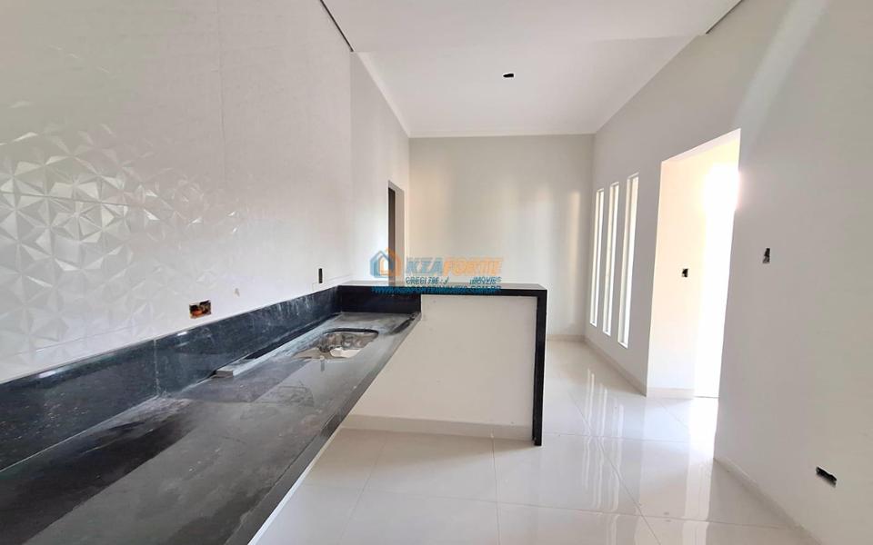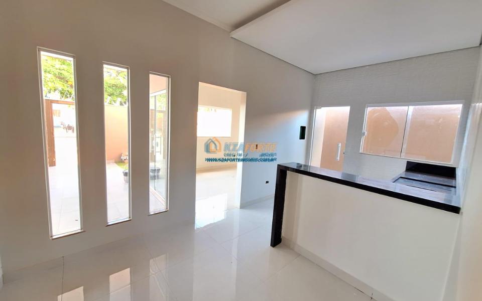 Linda casa nova com ótimo acabamento, forro de laje, contendo sala de estar, copa, cozinha americana, 1 suíte, 2 quartos, banheiro social, área de serviço e duas vagas de garagem. Excelente localização. Aceita financiamento.
