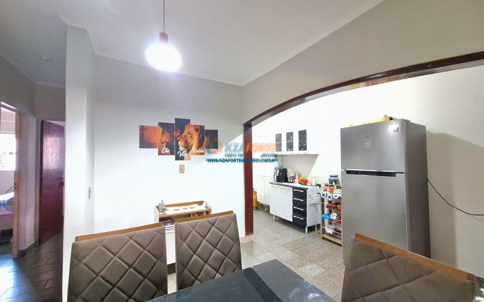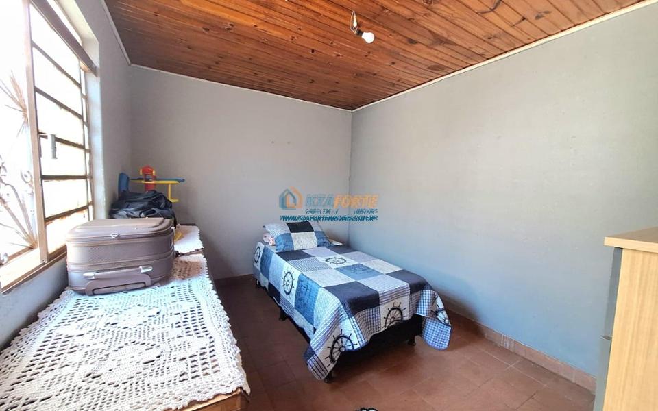 Casa com forro de laje e telha romana, contendo sala de estar com teto em gesso e sanca, sala de jantar, 1 suíte, 2 quartos, banheiro social e cozinha. Edícula nos fundos com forro de madeira, contendo quarto, lavabo e sauna. Varanda com churrasqueira nos fundos. Excelente localização. Ouve proposta. Não aceita financiamento.