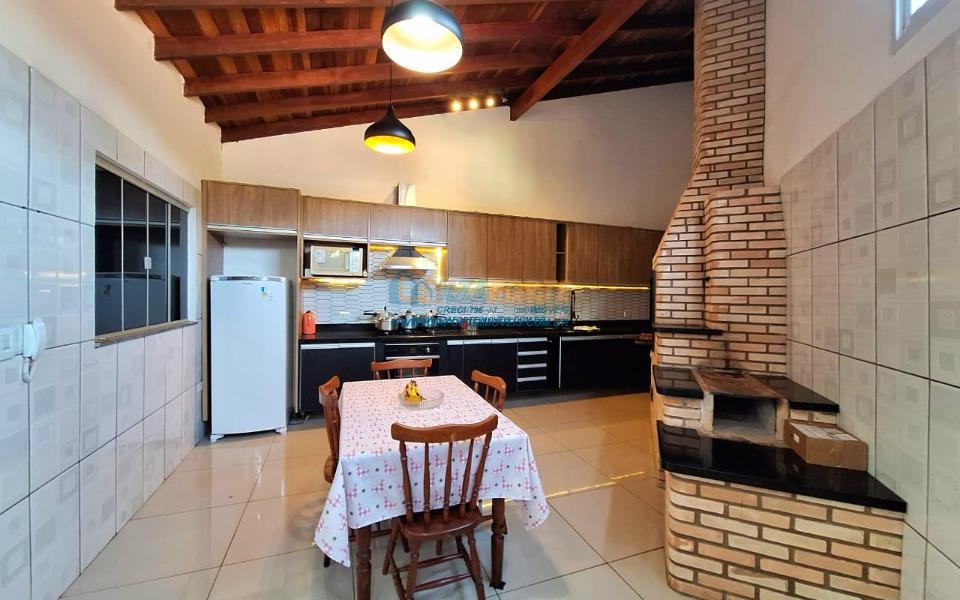 Casa com ótima estrutura, excelente acabamento, pisos em porcelanato, possui sala de estar, 3 quartos com armários e banheiro social, com forro de laje. Cozinha planejada com pé direito alto com forro de cedrinho e viga aparente, com forno à lenha, fogão, coifa, churrasqueira, cooktop, acabamento da pia e fogão à lenha todo em granito. Possui uma sala comercial com lavabo. Garagem coberta para um carro. Ouve proposta. Aceita financiamento.