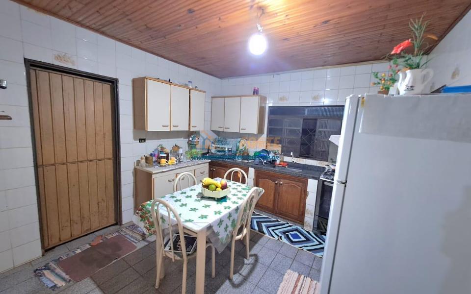 Casa com forro de madeira e PVC, telha romana, contendo sala 2 ambientes, 3 quartos, banheiro social, cozinha, varanda, área de serviço, churrasqueira com balcão, despensa e banheiro na área gourmet. Garagem coberta com telha de fibrocimento para 2 carros. Terreno amplo medindo 15,5 x 24 metros. Muito espaço na frente. Ótima localização. Não financia.