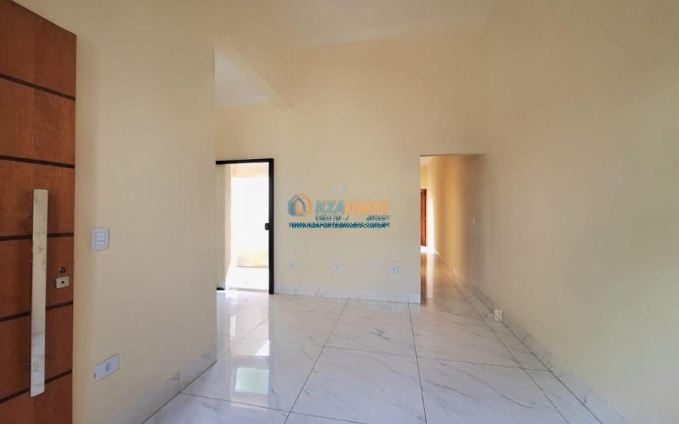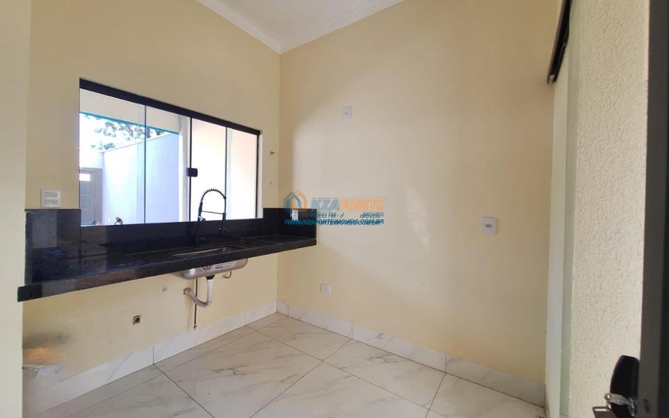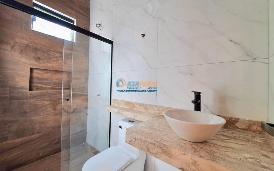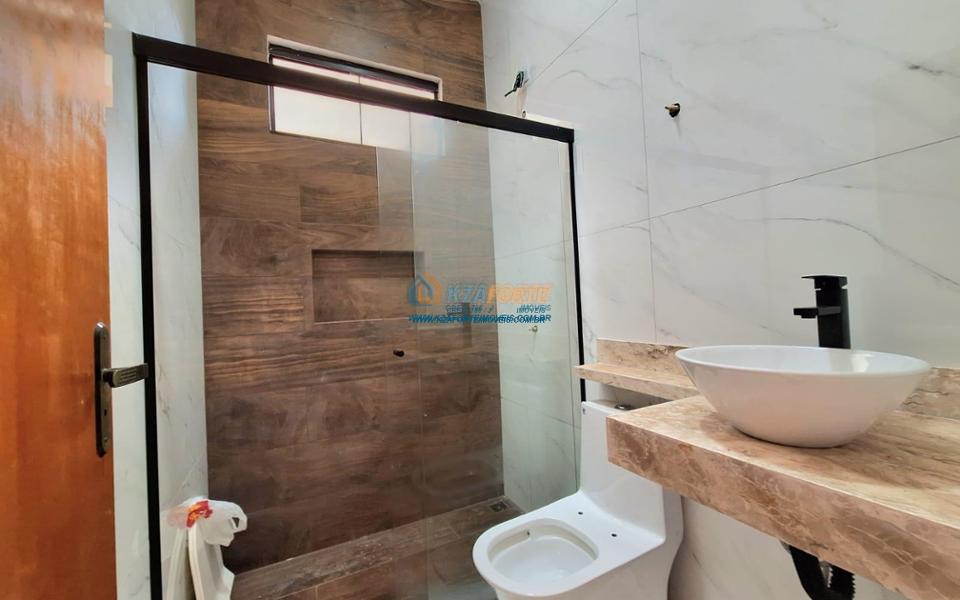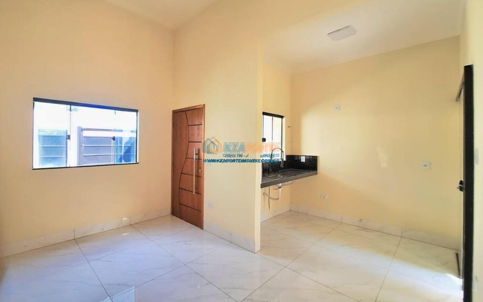 Casa nova com excelente acabamento, pisos e revestimentos em porcelanato polido, janelas de vidro temperado, porta da sala de madeira e da cozinha de vidro temperado. Possui sala de estar e cozinha integradas com pia de granito, uma suíte, um quarto, banheiro social e área de serviço coberta. Ótima localização. Aceita financiamento.