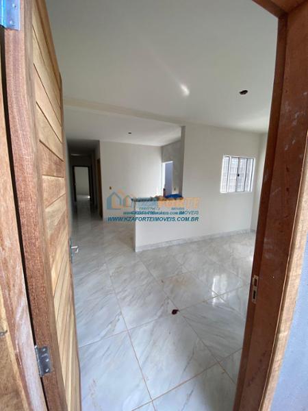 Casa nova com forro de laje e portão de elevação sem motor. Aceita financiamento.
