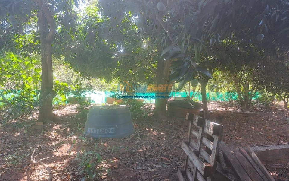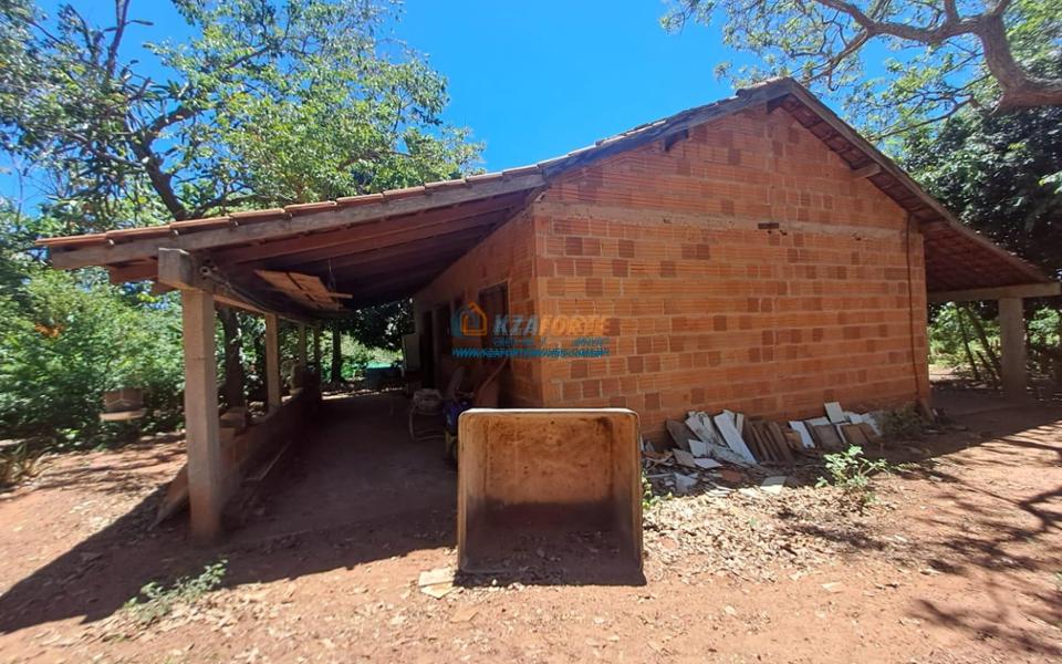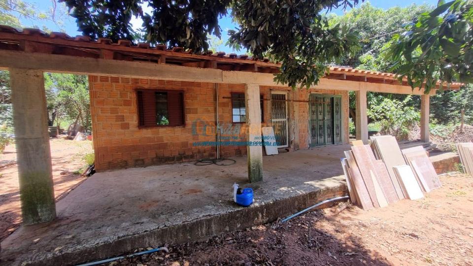 Área total de 7 hectares, medindo 170 metros de frente por 410 metros de fundos, sendo 5 hectares juntos com a sede e o restante de reserva, área coletiva e estrada. Possui casa de alvenaria com 135 m², rebocada por dentro e no contra piso, faltando rebocar por fora, contendo sala, dois quartos, cozinha, banheiro social, despensa (6,8 x 3,7 metros), varanda na frente e nos fundos. Galinheiro com 200 m², barracão medindo 10 x 6 metros, água de poço, energia, 3 hectares cercados e 2 hectares fechados com tela, várias árvores frutíferas e terra mista arenosa. Localizado a 10 km do Shopping Bosque dos Ypês e Hospital São Julião.