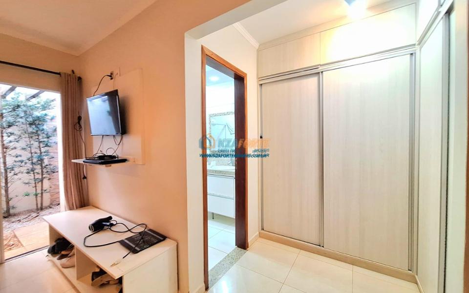 Excelente casa com forro de laje e acabamento em gesso, contendo sala dois ambientes, 1 suíte com closet e armário embutido, 2 quartos, jardim de inverno no quarto, banheiro social, cozinha com armário embutido, lavanderia, jardim, área gourmet na frente com churrasqueira, balcão e pia. Ótima localização, próximo à UCDB. Aceita financiamento.