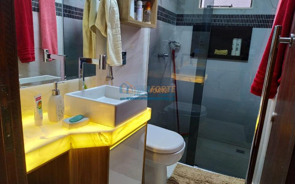Imóvel com ótimo acabamento, toda em porcelanato, iluminação em led, janelas com vidro temperado, detalhe em gesso, parede em 3D e painel de TV na sala.