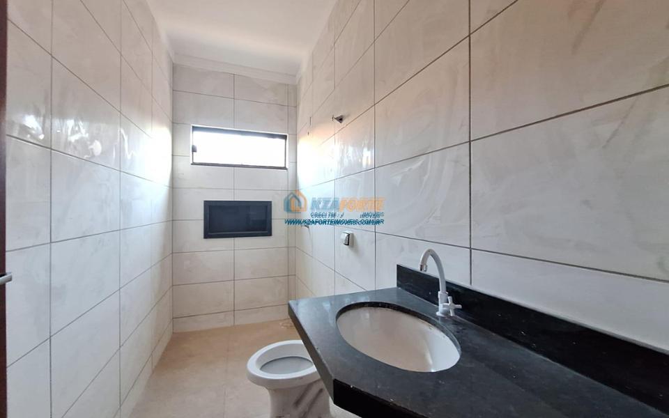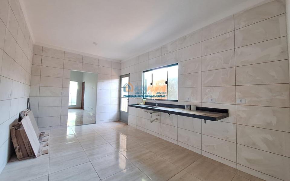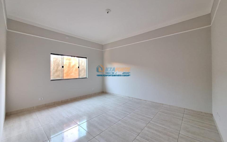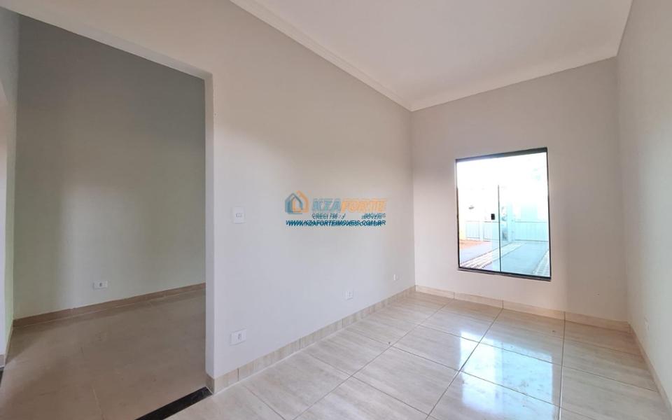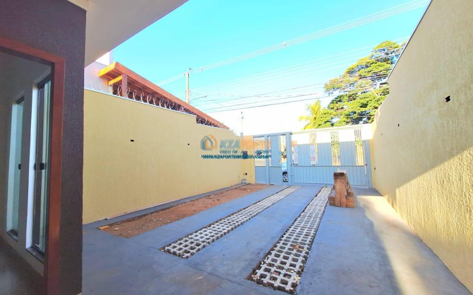 Excelente casa nova, com forro de laje, contendo sala de estar, 1 suíte, 2 quartos, banheiro social, cozinha, lavanderia, sala de jantar ou espaço para área gourmet com piso e coberto para fazer como quiser. Fundos com grande espaço, medindo 6 x 25 metros. Excelente localização, próximo de escolas militares. Aceita financiamento.