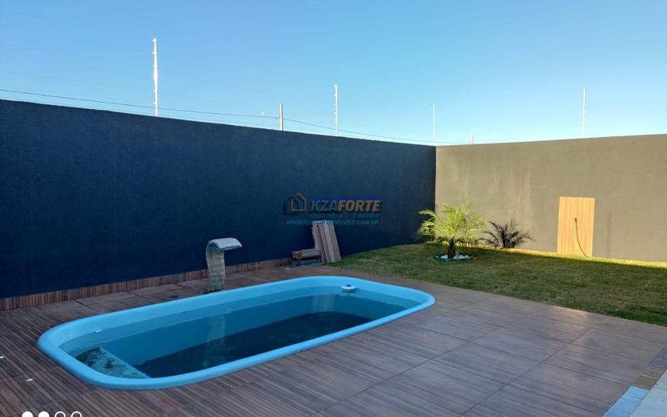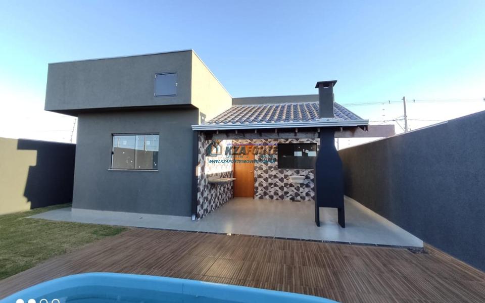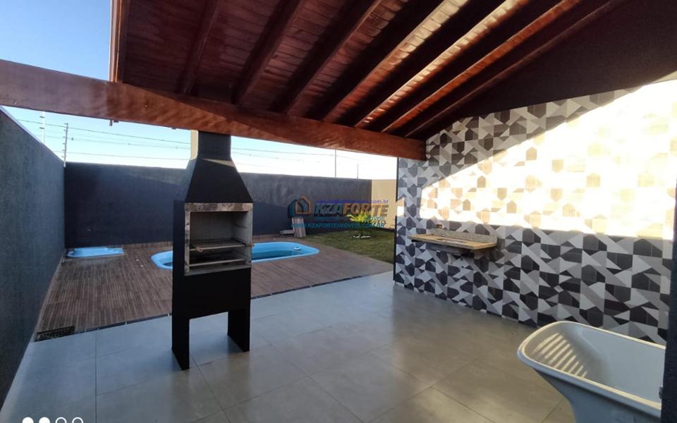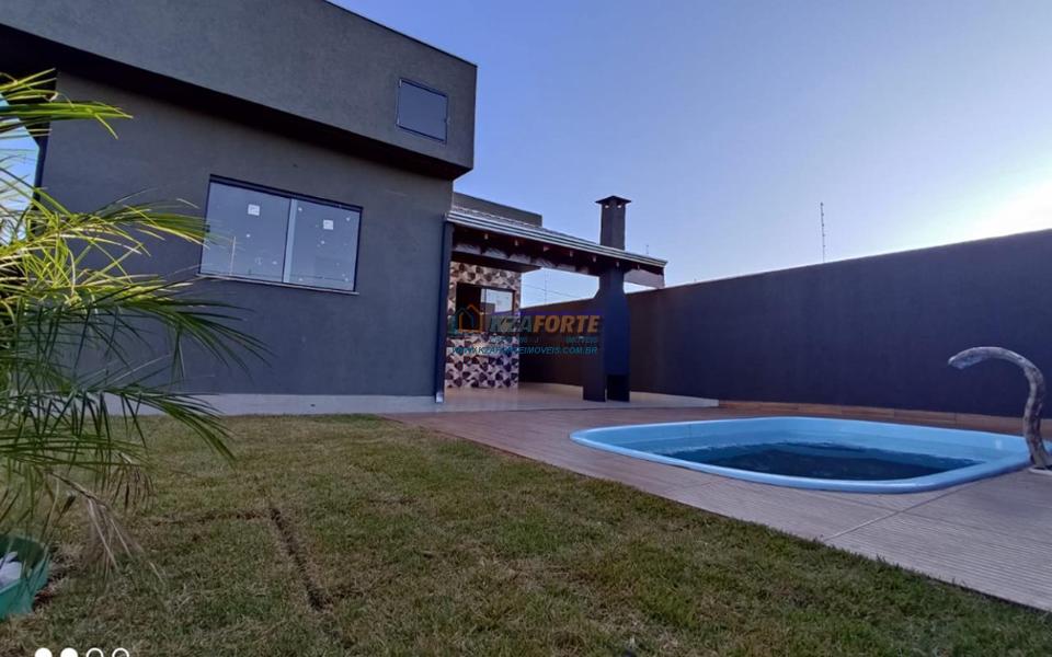 Imóvel com forro de laje, sala ampla, cozinha e dois banheiros revestidos em porcelanato, dois quartos e uma suíte. Espaço gourmet em conjunto com lavanderia e piscina. Vaga coberta para dois carros e abrigo para mais três carros. Terreno medindo 10 x 30 metros. Aceita financiamento. Em construção, previsão de término para o final de Setembro de 2022. Fotos do imóvel pronto são ilustrativas.