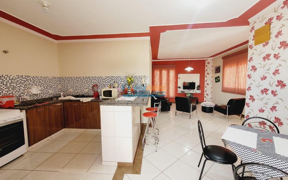 Sobrado comercial e residencial em ótima localização, de esquina em Avenida comercial, proximidade com Havan, Atacadão, Assaí Atacadista, Ceasa e entre dois Shoppings (ambos apenas 5 minutos). Pavimento inferior: salão comercial individualizado com rebaixamento em gesso medindo aproximadamente 100 metros quadrados, contendo banheiro masculino e feminino, 02 despensas, escritório e copa, fachada com cobertura em zinco, possui alarme e monitoramento por câmera de segurança. Acesso ao sobrado com portão social e portão de elevação, sendo no piso inferior garagem coberta para 04 carros, despensa, um quarto, área de serviço coberta, banheiro social e churrasqueira. No piso superior: escadaria de acesso, sala ampla dois ambientes com detalhes em gesso, cozinha conceito aberto, bancadas com armários, banheiros com box, armários e chuveiros, suíte com closet, 02 quartos, circulação e lavanderia, dois ares condicionados e ventiladores de teto nos quartos. Aceita veículo ou apartamento de menor valor na negociação. Aceita financiamento.