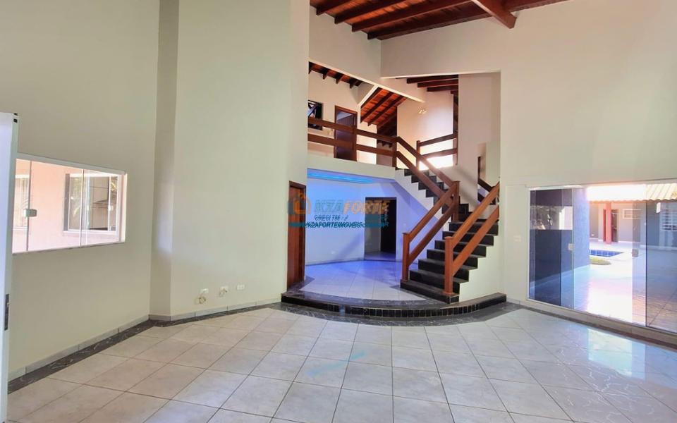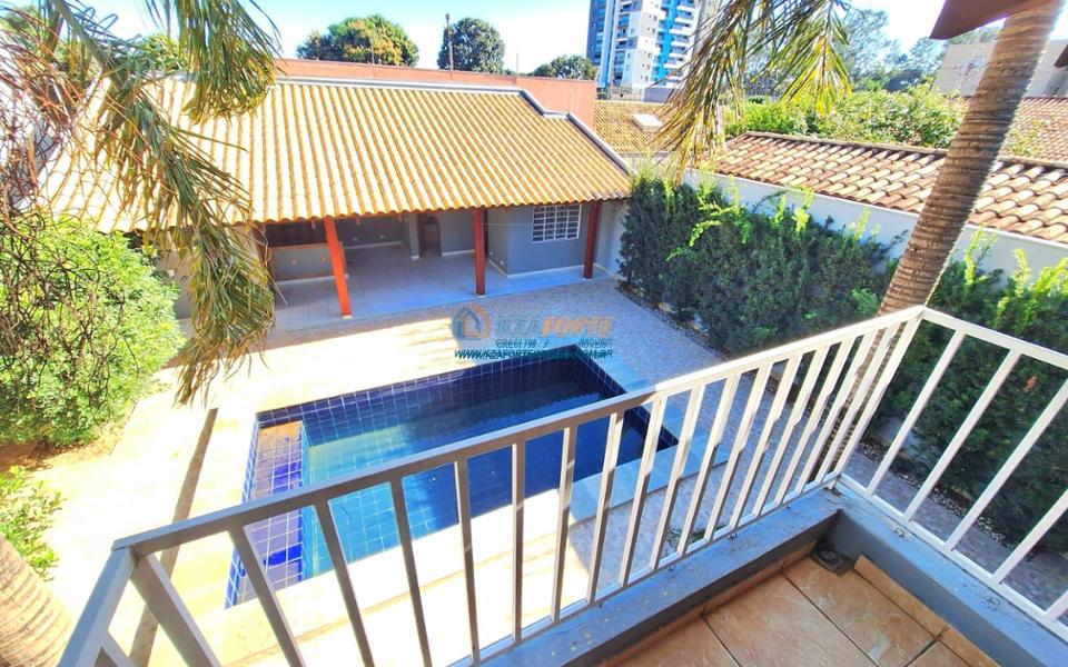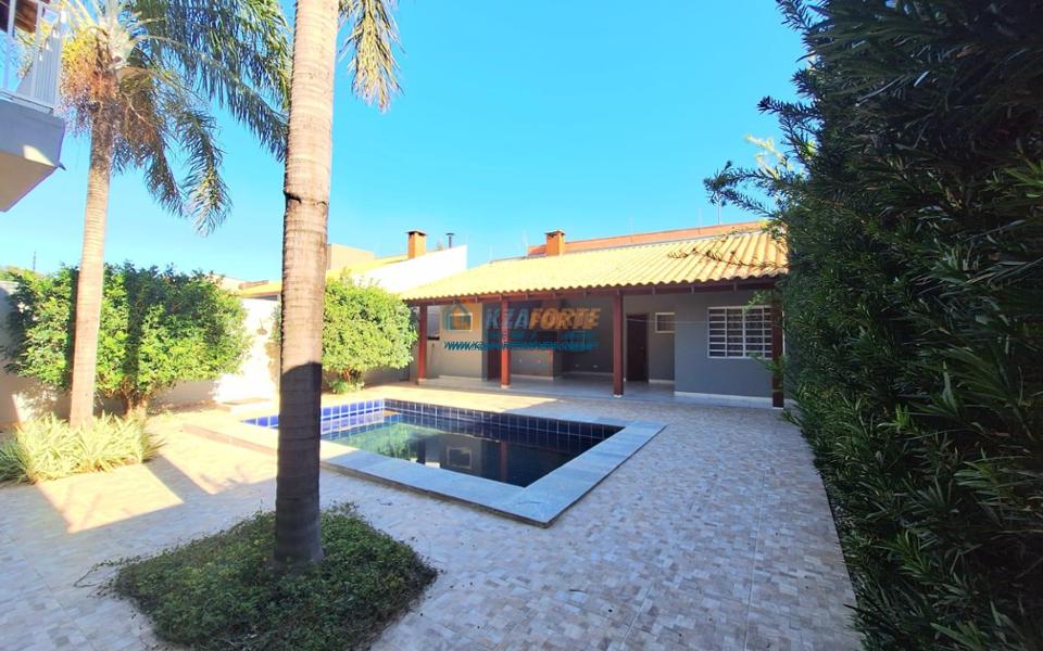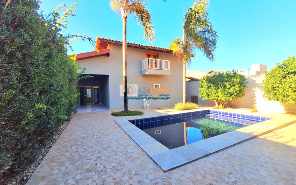 Casa com ampla área construída e terreno, em excelente localização. Possui sala de estar com pé direito alto e porta pivoltante, copa, cozinha planejada com coifa e torneira com água quente, despensa, lavanderia, 1 suíte com armário embutido, box em vidro temperado, banheiro com box em vidro temperado, armário e torneira com água quente, 2 quartos, despensa, lavanderia, banheiro social com box em vidro termperado, armário e torneira com água quente, escritório, sala íntima com sacada, espaço gourmet com churrasqueira, pia, balcão em granito, despensa, apartamento, piscina, jardim, garagem com vaga para três carros, cerca elétrica, portão de elevação com motor e portão social. Aceita financiamento.