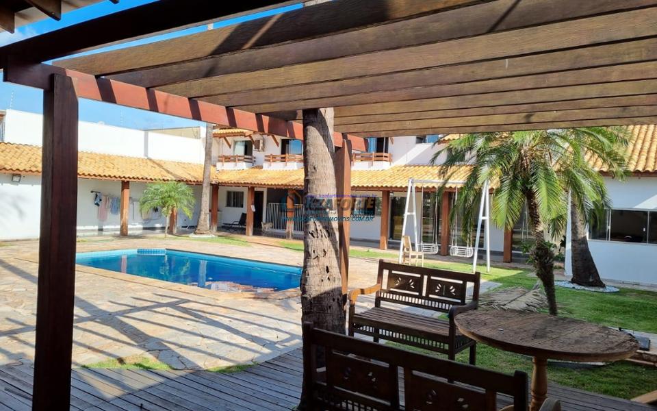 Excelente imóvel com 18 anos de construção, com reforma realizada há quatro anos, todo avarandado, contendo duas suítes com banheira e três apartamentos, sala de estar, sala de TV e sala de jantar, cozinha com ambiente integrado, ótima área gourmet com piscinas adulto e infantil, casa de árvore, churrasqueira, fogão à lenha, sauna, banheiro, despensa, jardim com pergolado e canil. Aquecedor solar em todos os banheiros e na cozinha. Corpo da casa de laje e forro de madeira. Varandas com viga aparente. Localização privilegiada. Aceita financiamento. Ouve propostas.