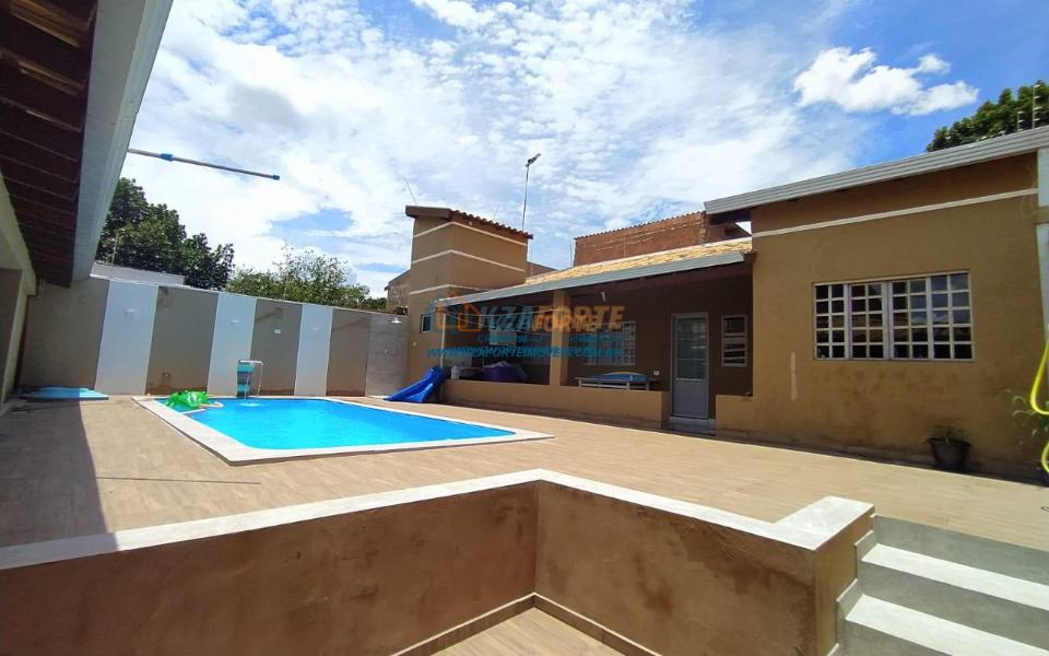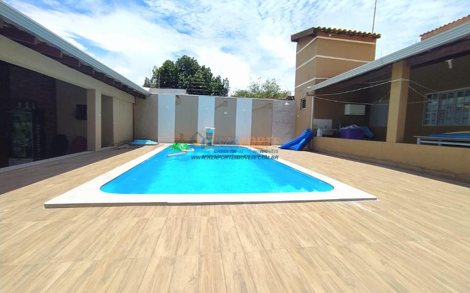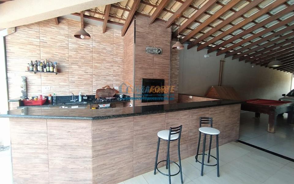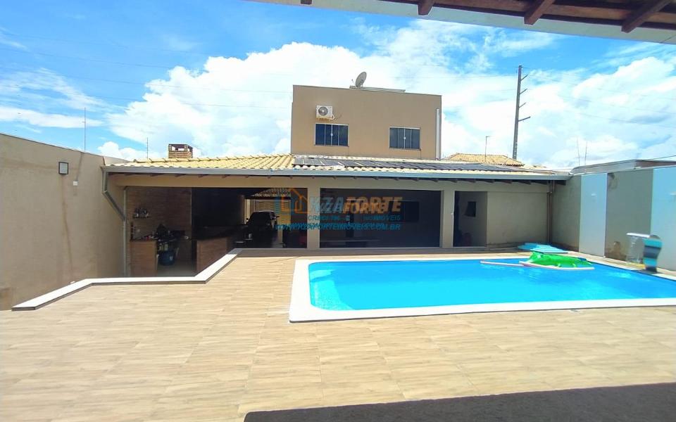 Sala 2 ambientes, 1 quarto no térreo, piso superior contendo 1 suíte master com sacada, banheiro social no térreo e piso superior. Edícula com forro em gesso, piscina medindo 7x3,5 com aquecedor e hidromassagem.