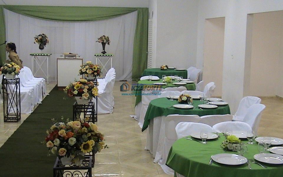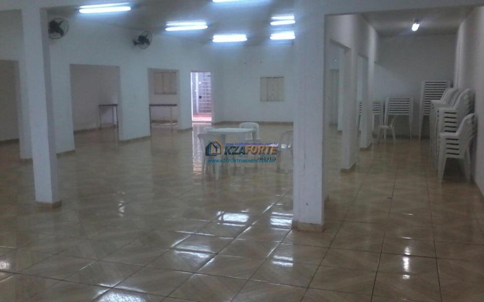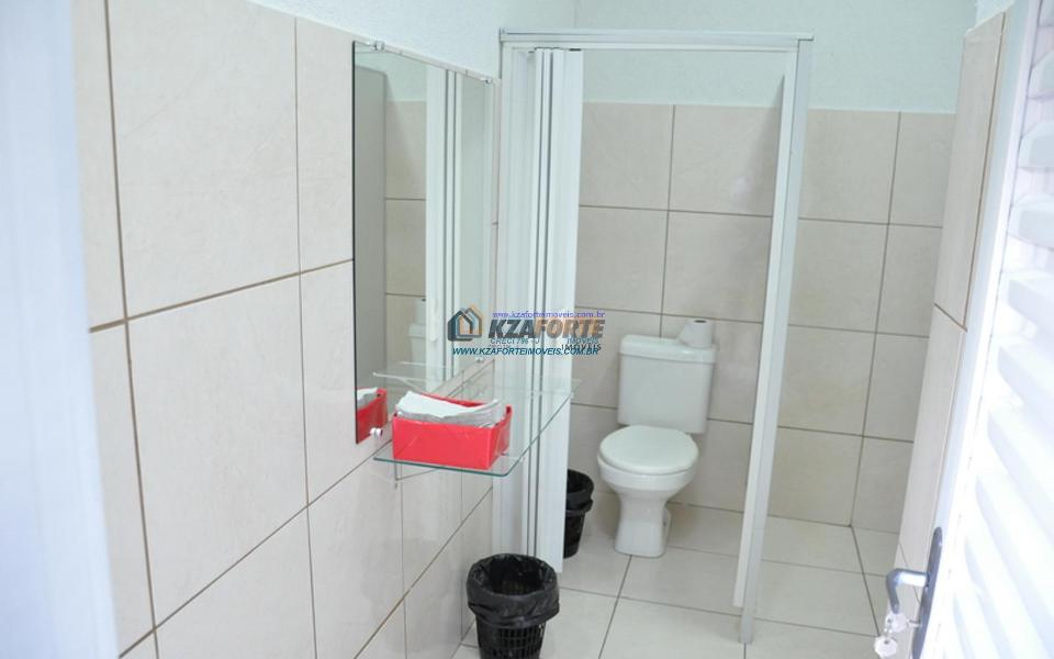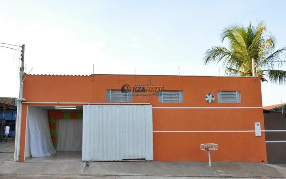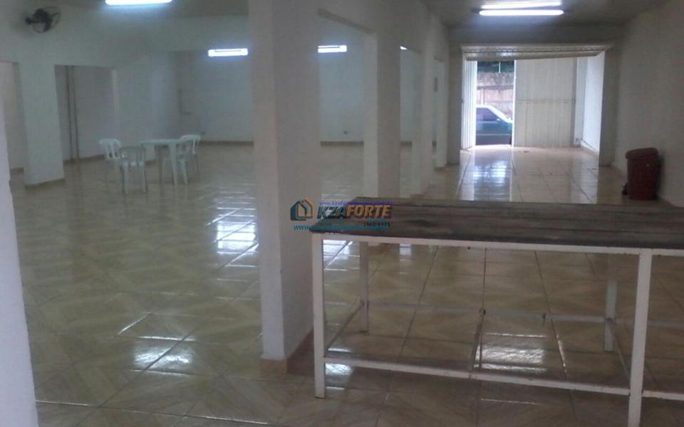 Galpão comercial medindo 12 x 30 metros, contendo dois banheiros. Possui uma casa de madeira nos fundos.