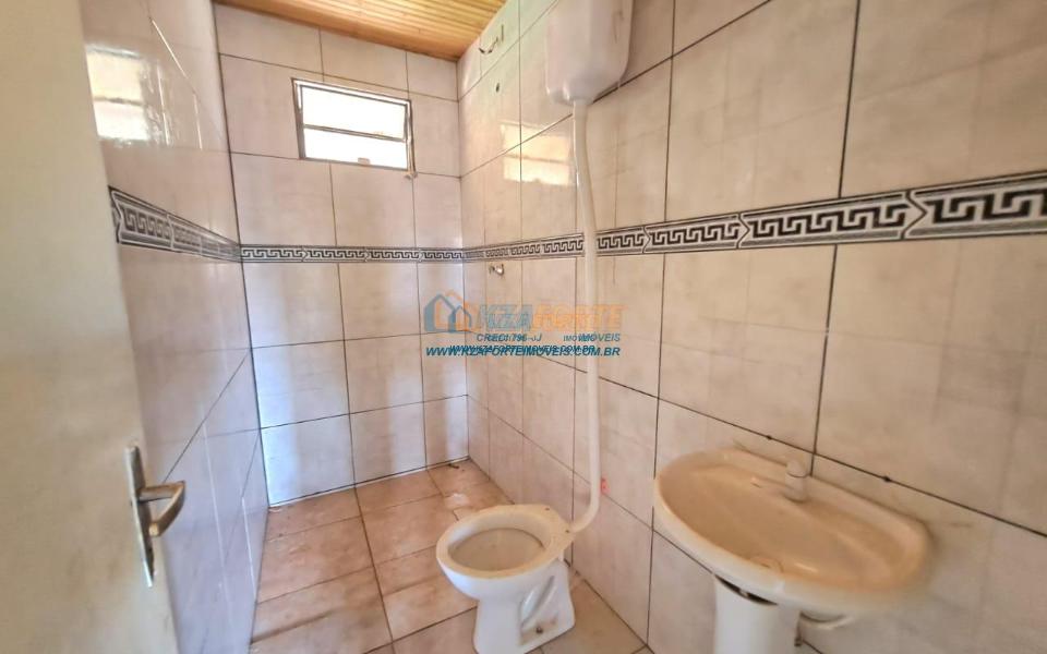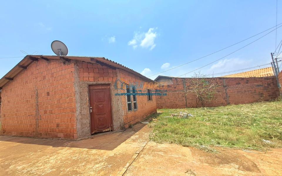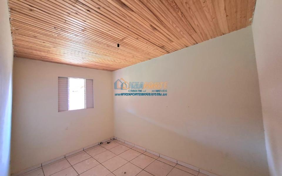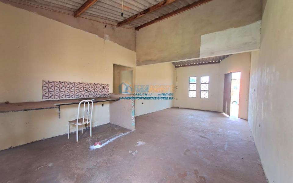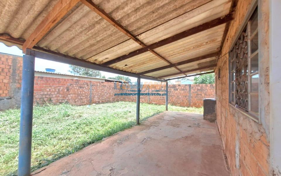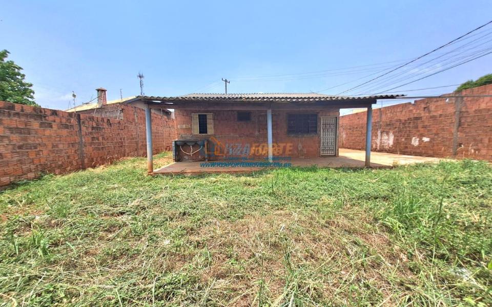 Casa rebocada e pintada por dentro, sem forro, telha de fibrocimento, piso de cimento queimado, contém sala e cozinha americana, dois quartos, banheiro social, varanda nos fundos e área de serviço. Terreno amplo medindo 17,01m de frente, 29,60m do lado direito, 21,57m do lado esquerdo e 15,00m nos fundos. Bastante espaço nos fundos para área gourmet ou até construir outra casa. Não financia.
