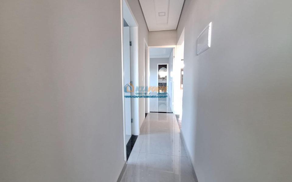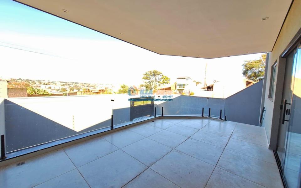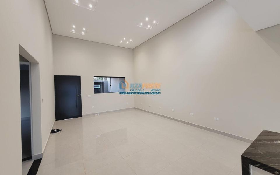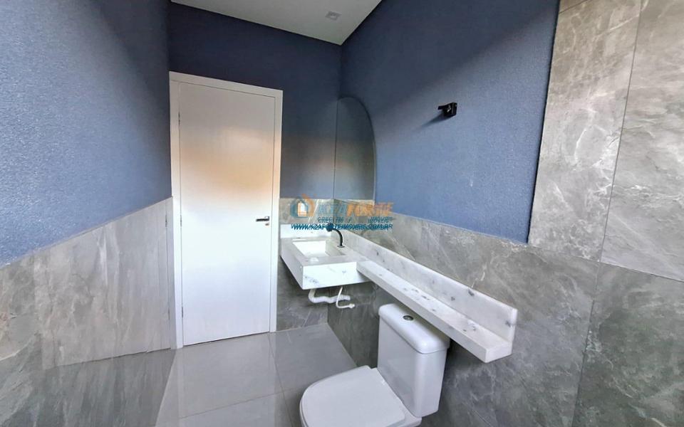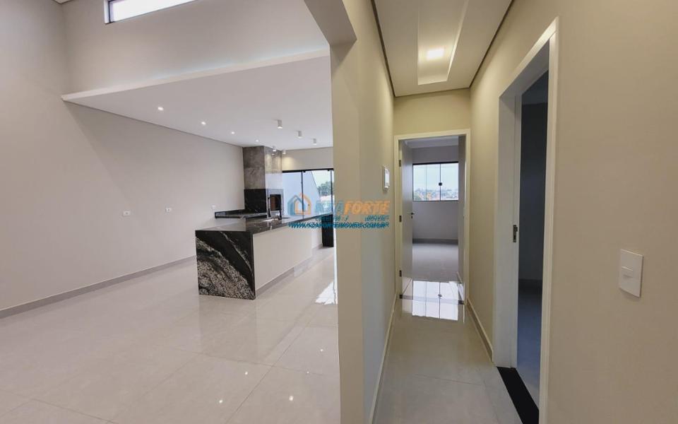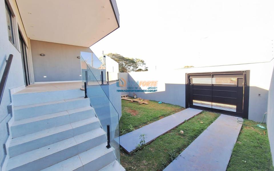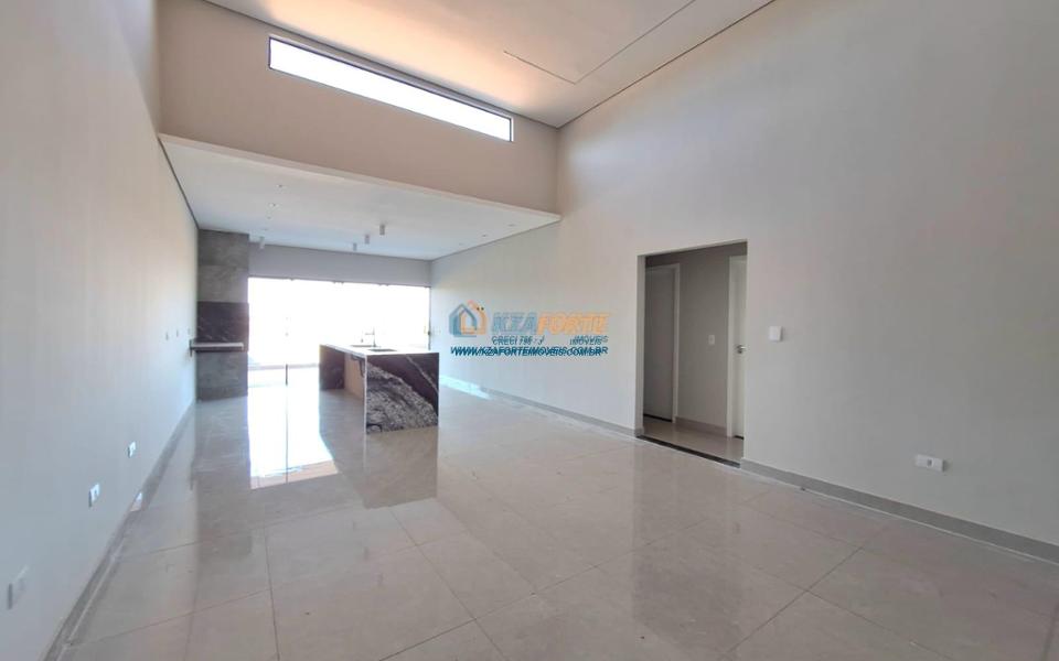 Excelente casa de alto padrão, sala com pé direito alto sendo para 2 ambientes integrada à cozinha gourmet com churrasqueira com bancada lateral e ilha em bancada com mármore Inter Wood e cuba dupla com torneira gourmet, fino acabamento com piso e revestimento em porcelanato acetinado e polido, com projeto luminotécnico e iluminação natural proporcionando maior luminosidade, sacada ampla com vista para a cidade, porta de entrada com fechadura digital, esquadrias em alumínio preto fosco, suíte espaçosa com banheiro com pia dupla esculpida, box e rebaixamento em gesso com iluminação em led, banheiro social com pia esculpida, box e rebaixamento em gesso. Imóvel possui duas frentes, garagem com forro madeira. Forro 50% de laje e 50% gesso acartonado. Aceita financiamento.