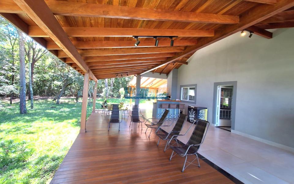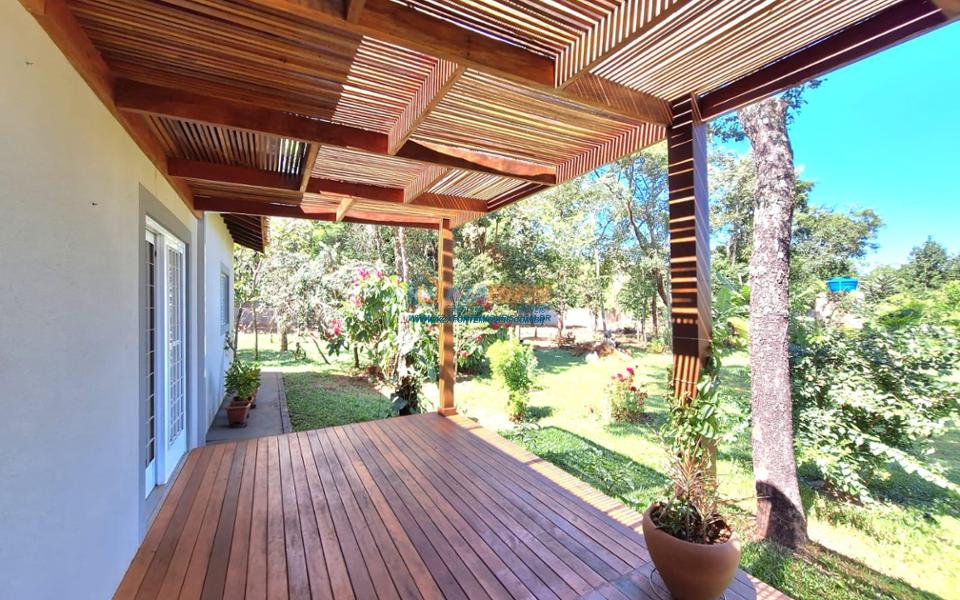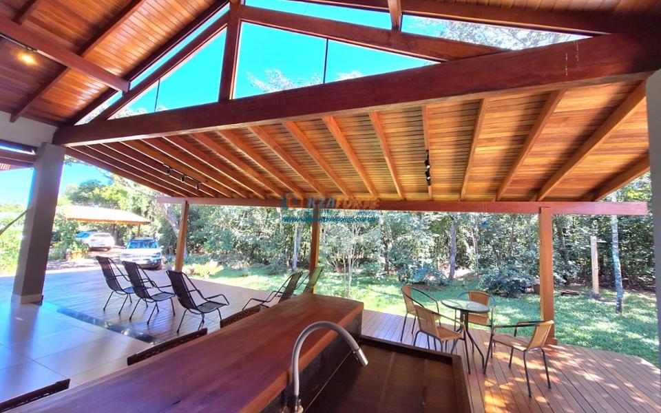Linda chácara com 5.000 m² e aproximadamente 200 m² de área construída. Casa contendo sala e cozinha integradas, 1 suíte, 1 quarto, banheiro social, despensa, varanda com deck de madeira, área gourmet com churrasqueira, balcão, fogão e forno à lenha. Forro de cedrinho e vigas de peroba rosa. Possui galinheiro, lindo jardim, horta, várias plantas frutíferas e parte com gramado. Muro na lateral direita e fundos. Parte da frente e lateral esquerda com cerca e tela. Excelente localização à 5 km do asfalto e cerca de 12 km do Shopping Campo Grande. Ouve proposta. Não aceita financiamento.