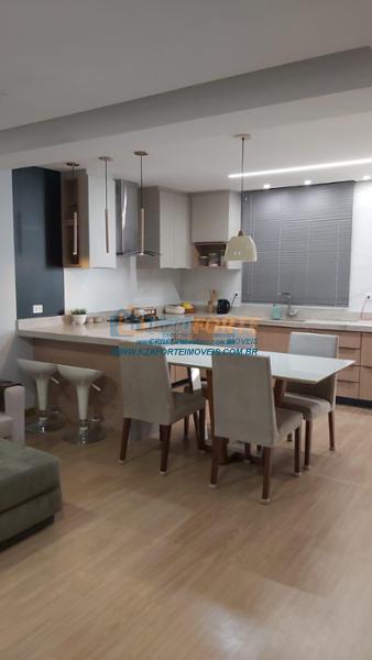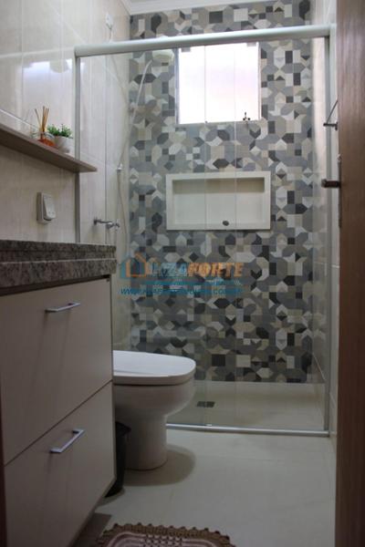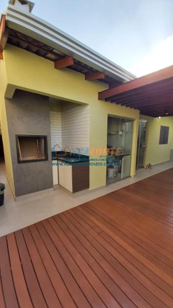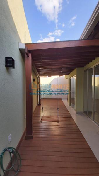 Casa de condomínio contendo sala ampla com 2 ambientes (com ar condicionado, tela de 100 polegadas home cinema e projetor), cozinha planejada (com cooktop, coifa, cristaleira, torneira com água aquecida e filtro), 1 suíte (com armário embutido, ar condicionado, banheiro com box e armário), 1 quarto (com ar condicionado, painel decorativo e led), banheiro social com box e armário, lavanderia com armário, garagem coberta para 2 carros, varanda com churrasqueira, deck e pia. Possui energia fotovoltaica e câmera no condomínio. Valor do condomínio: R$ 100,00.