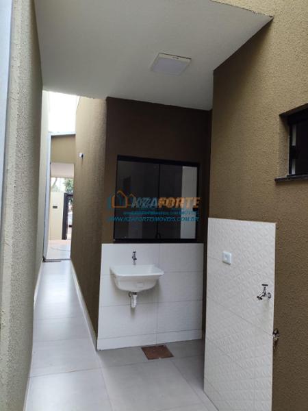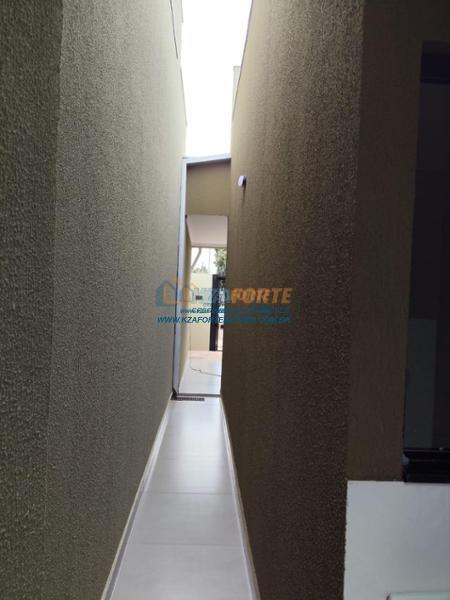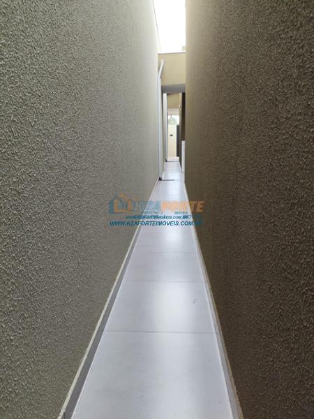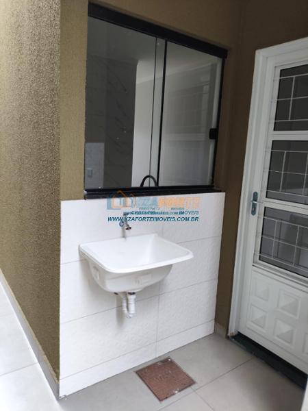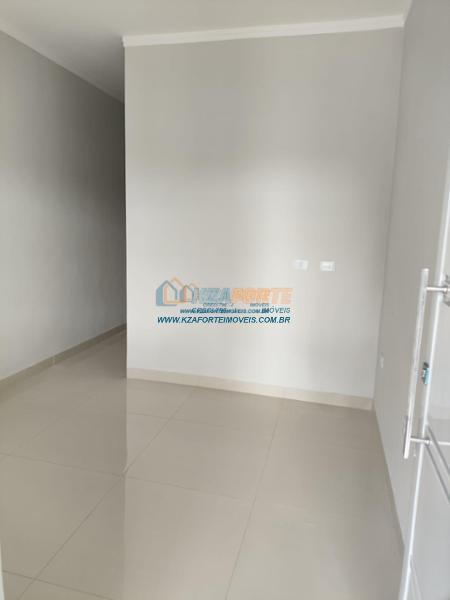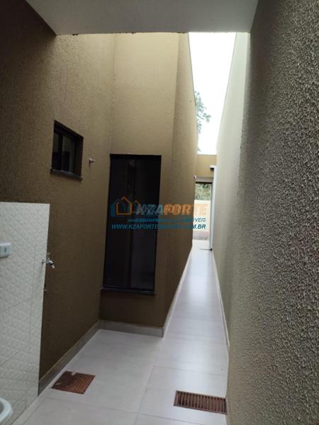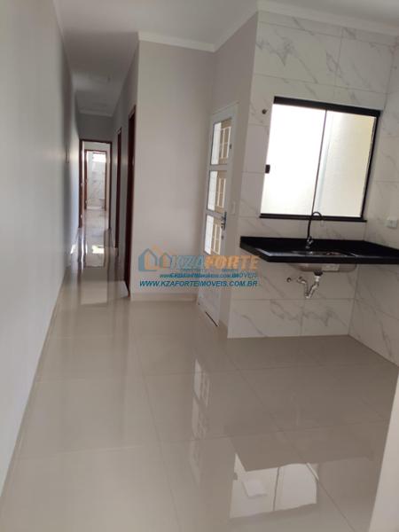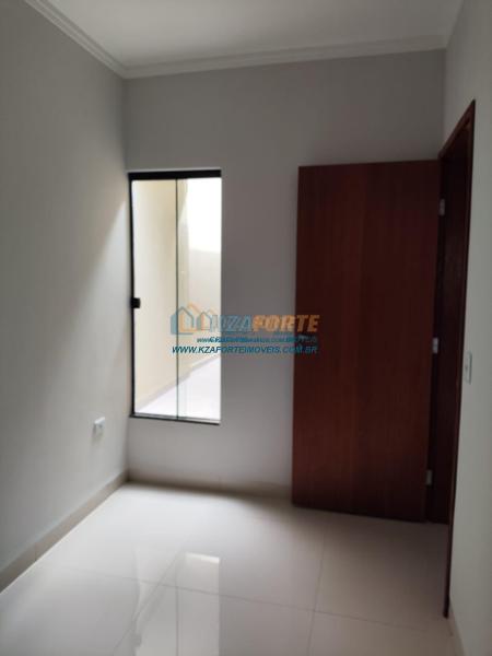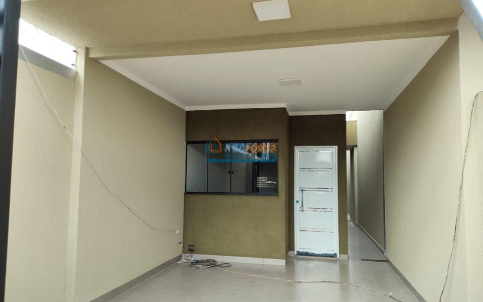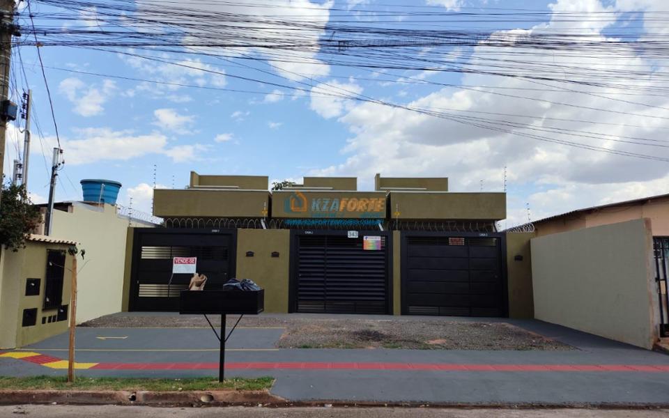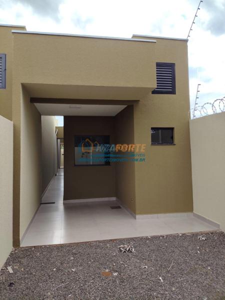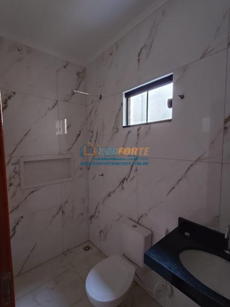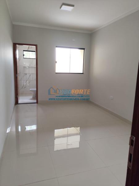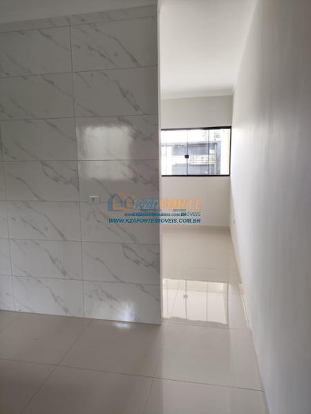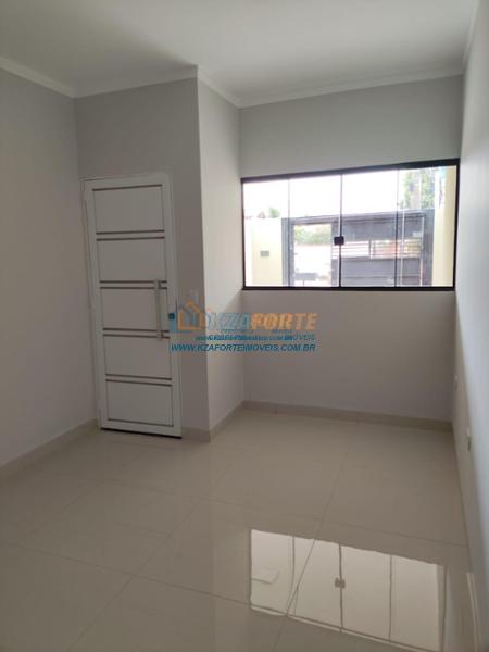 Casa nova com forro de laje, contendo sala de estar, cozinha, 1 apartamento, 1 quarto, banheiro social, área de serviço e 1 vaga de garagem. Ótima localização. Aceita financiamento.