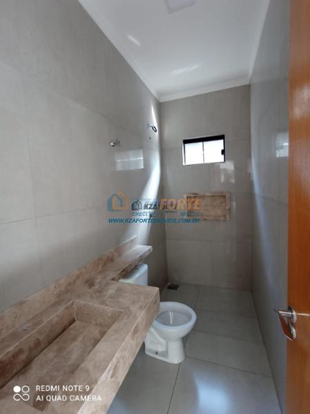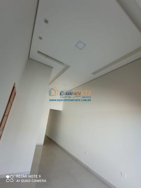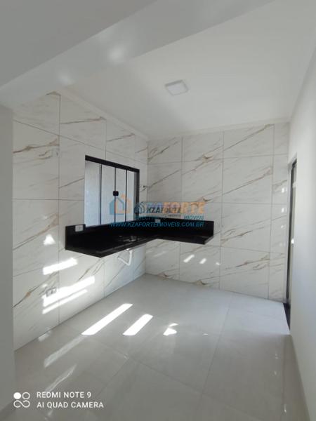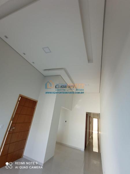 Sala com pé direito duplo, forro de laje, portão de elevação sem motor, área gourmet, pisos e revestimentos em porcelanato. Aceita financiamento.