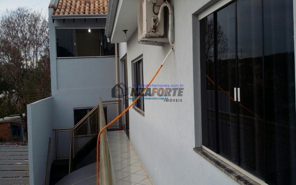 Excelente sobrado, comercial na parte inferior e residencial na parte superior, com excelente acabamento e bem arejado, com forro de laje, acabamento em gesso, pisos e revestimentos em porcelanato, churrasqueira, forno à lenha, área gourmet, todas as janelas com vidro temperado, box no wc e cozinha planejada (tipo americana) com balcão de granito.