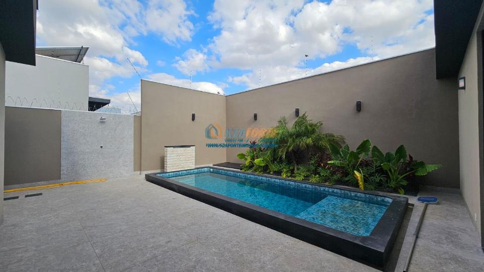 Belíssima casa com fino acabamento, pé direito duplo, possui 3 quartos (1 suíte e 2 demi-suítes). Excelente espaço gourmet com churrasqueira e piscina, design moderno, com ambientes amplos e integrados. Ótima localização. Aceita financiamento.