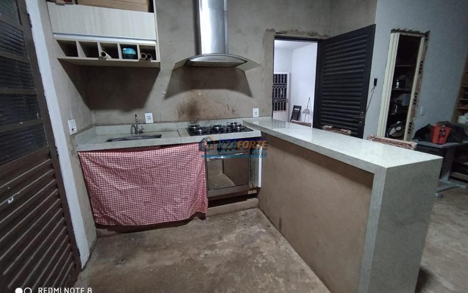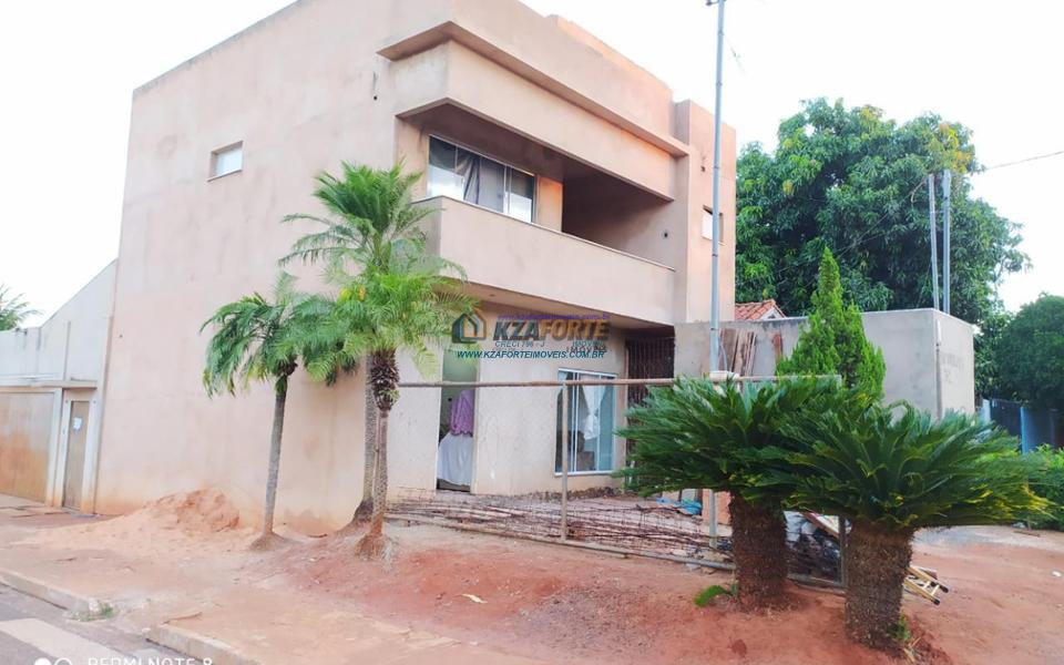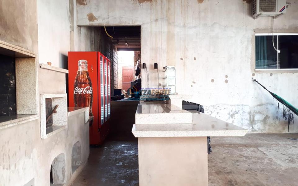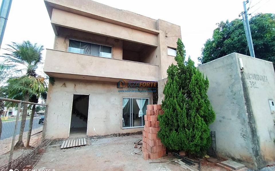 Sobrado de esquina, faltando apenas alguns acabamentos, todas as portas e janelas em vidro temperado, área gourmet com fogão à lenha, churrasqueira, balcão, pia toda em granito, 02 despensas e salão comercial medindo 4x7 metros.